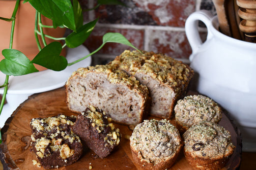 All-purpose flour, natural sweetener, brown sugar substitute, salt, walnuts, organic vegan vanilla protein powder.